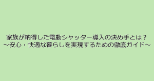 家族が納得した電動シャッター導入の決め手とは? ~安心・快適な暮らしを実現するための徹底ガイド~