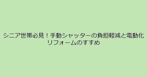 シニア世帯の方々が感じる手動シャッターの負担や安全性の問題を、電動シャッターへのリフォームで解決する方法を専門用語の解説や具体例、Q&A形式で分かりやすく解説。安心・快適な住環境づくりに向けた詳細ガイドです。