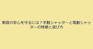 家庭の安心を守るには?手動シャッターと電動シャッターの特徴と選び方