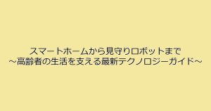 スマートホームから見守りロボットまで ~高齢者の生活を支える最新テクノロジーガイド~