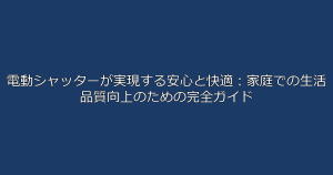 電動シャッターが実現する安心と快適:家庭での生活品質向上のための完全ガイド