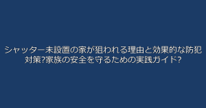 シャッター未設置の家が狙われる理由と効果的な防犯対策〜家族の安全を守るための実践ガイド〜