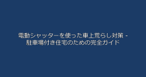 電動シャッターを使った車上荒らし対策 - 駐車場付き住宅のための完全ガイド