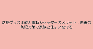 防犯グッズの比較と電動シャッターの具体的なメリットを、具体的な統計データやIoT、AIなど最新技術の解説とともに徹底解説。防犯対策に迷っている家庭に向けた実績と事例に基づく導入ガイドです。